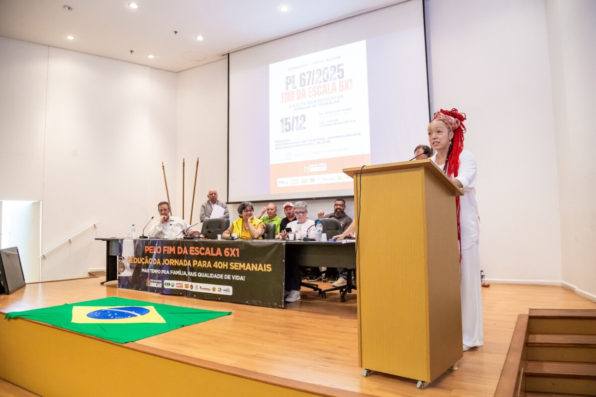 Durante o seminário, a deputada Daiana Santos destacou que o PL 67/2025, de sua autoria, tramita na Comissão do Trabalho da Câmara dos Deputados e dialoga com a PEC do senador Paulo Paim (PT), que avança no Senado Federal. O projeto prevê a redução da jornada para até 40 horas semanais e a garantia de dois dias de repouso remunerado, superando a lógica da escala 6×1.