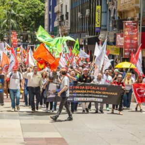 A mobilização foi encerrada com palavras de ordem em defesa do fim da escala 6×1, da redução da jornada de trabalho, da unidade da classe trabalhadora e contra a precarização das relações de trabalho.